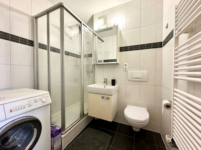 Die Immobilie wurde im Jahr 2015 umfassend und hochwertig saniert. Im Zuge dessen wurde die veraltete Badewanne durch eine zeitgemäße Dusche ersetzt, zudem ein Anschluss für eine Waschmaschine installiert. Das Badezimmer ist deckenhoch gefliest und mit einem praktischen Handtuchheizkörper ausgestattet.