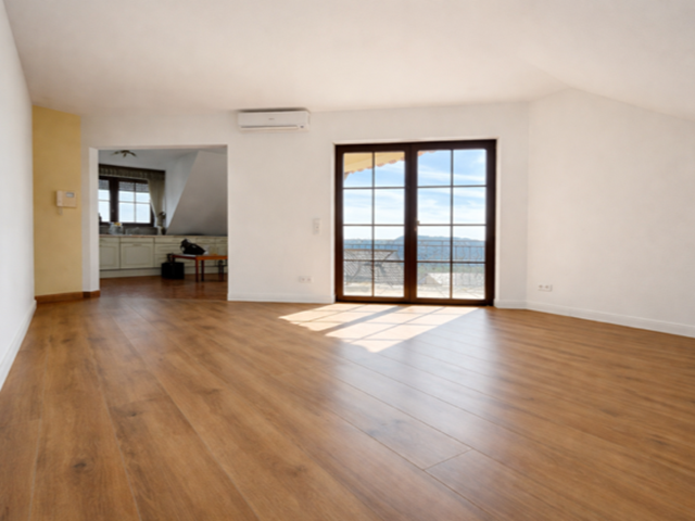 Die ebenfalls geräumig gestaltete 4-Zimmer-Wohnung im Dachgeschoss mit einer Gesamtwohnfläche von ca. 90 m² ohne Balkonfläche überzeugt durch ihren offenen Grundriss und lichtdurchflutete Räume. Auch hier ist eine offene Küche vorhanden, die sich harmonisch in den Wohnbereich einfügt. Das moderne Tageslichtbad ist mit Badewanne und Dusche ausgestattet. Der kompakte, sonnige Balkon ergänzt das Raumangebot und lädt zum Verweilen mit Ausblick ein.