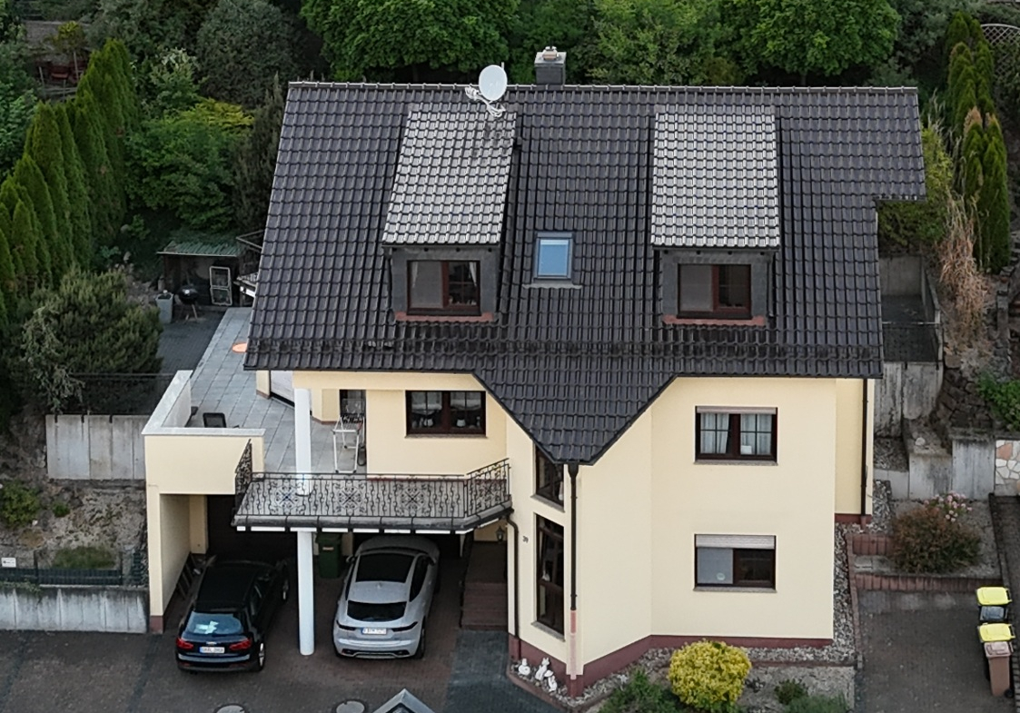 Insgesamt befindet sich die Liegenschaft in einem guten und gepflegten Zustand. Den harmonischen Gesamteindruck rundet die gepflegte Außenanlage ab – mit Hangabstützungen aus Winkelsteinen, betonierten Gehwegen sowie gepflasterten Flächen vor der Doppelgarage und dem Hauseingang.